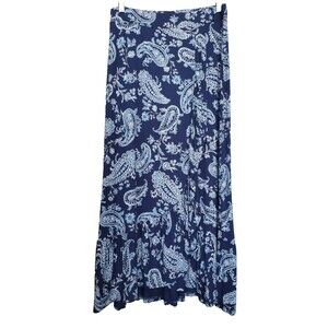 Talbots Petite Jersey Knit Blue Paisley Faux Wrap Maxi Pull-On Skirt Size MP