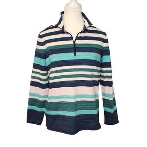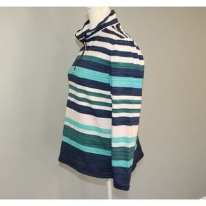 Talbots Petite Large Quarter Zip Stripe Teal Navy White LS Terry Top Side Vents