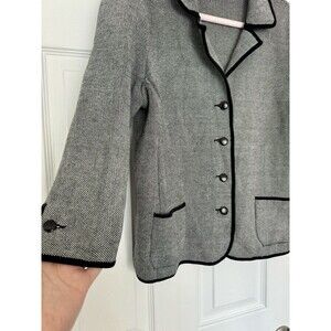 Talbots Petite Large Women’s Blazer knitted Wool Cotton Black White