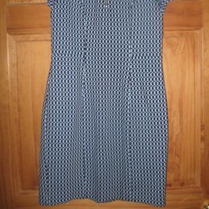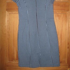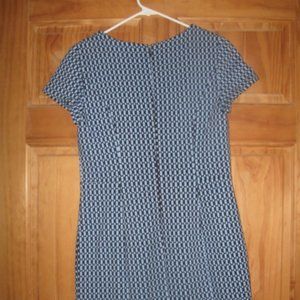 Talbots Petite Light Blue/Navy Blue Patterned Dress with Two Front Pockets
