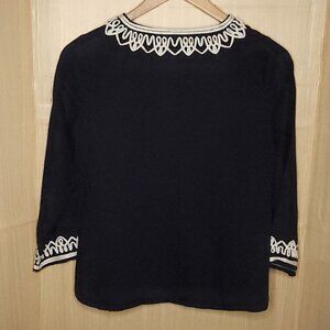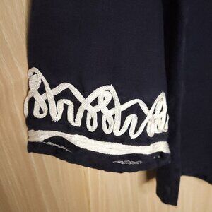 Talbots petite linen navy white embroidered tunic SP. Good condition (may have never been worn). Measurements are: 21” sleeve, 24” from shoulder to hem, and 19” from armpit to armpit.