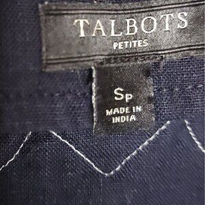Talbots Petite Linen Navy White Embroidered Tunic SP