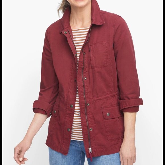 Talbots Petite MP Cotton Twill Safari Utility Jacket Burgundy Drawstring Waist