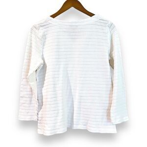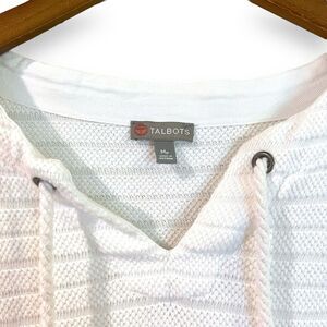 Talbots Petite MP White Stripe Textured Pullover Top Cotton Rope Tie V-Neck.