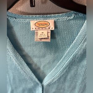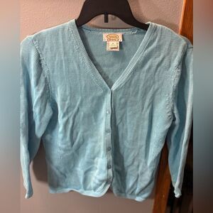 Talbots Petite Medium Mercerized Cotton Vneck Cardigan Size M Aqua Blue