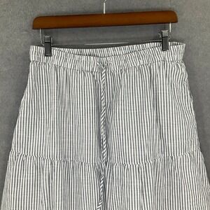 Talbots Petite Midi Skirt Sz M Striped Tiered Drawstring Elastic Waist Cotton