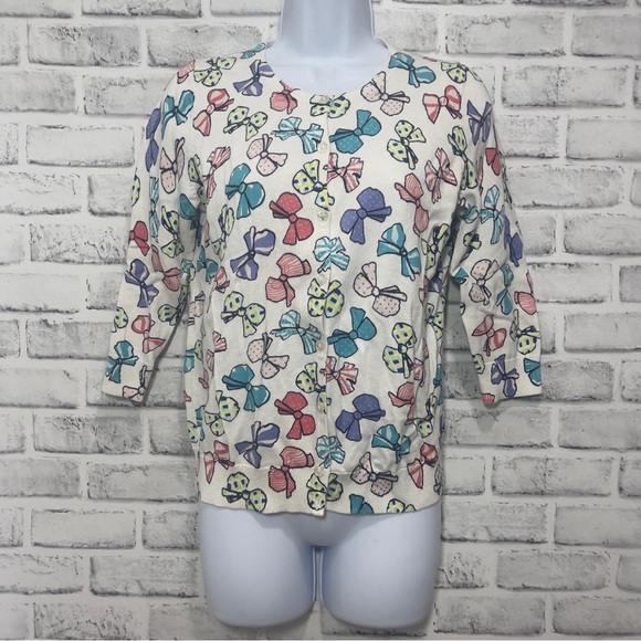 Talbots Petite Multicolored Bow Button Up Cardigan Small Petite