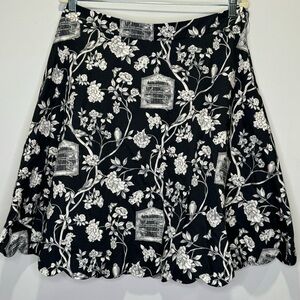 Talbots Petite Novelty Floral Birdcage Pattern Print Scalloped Mini Circle Skirt
