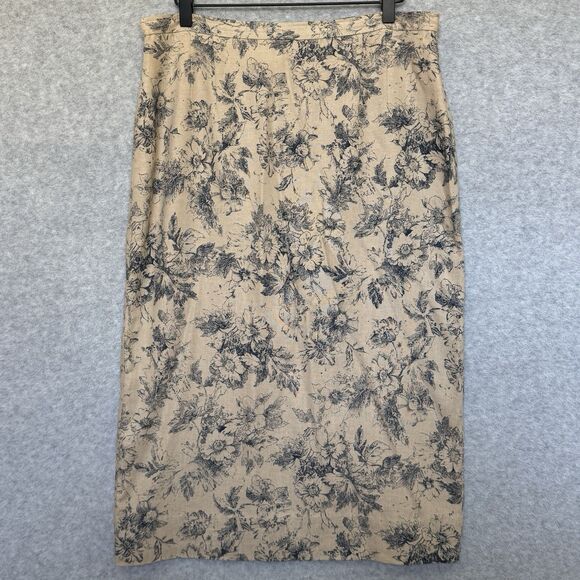 Talbots Petite Pencil Skirt Women 14 Beige Floral Midi Linen Office Tea Party
