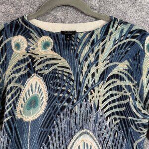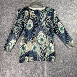Talbots Petite Pure Cashmere Sweater Peacock Feather Print SP