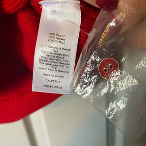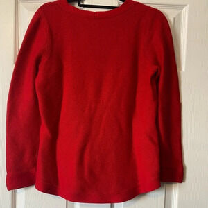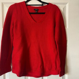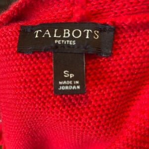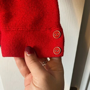 Talbots Petite Red V-Neck Sweater with Red/Gold Enamel Button on sleeve detail