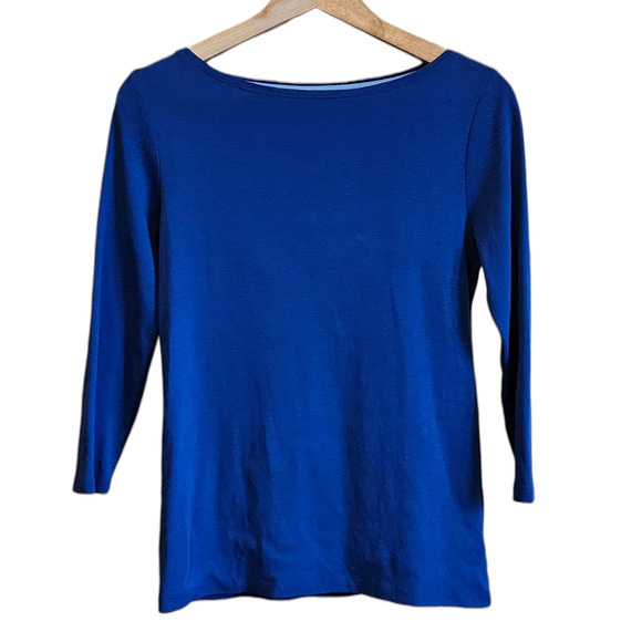 Talbots Petite Royal Blue Pima Cotton 3/4 Long Sleeve Boat Neck Tee Small