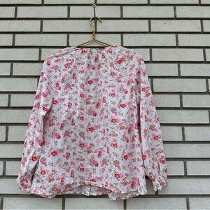 Talbots blouse, floral top, pintuck blouse, ruffle trim blouse, lace inset blouse, ditsy floral shirt, romantic top, soft cotton blouse, spring blouse, summer top, layering blouse, button front blouse, long sleeve blouse, cottagecore blouse, garden party style, vintage inspired top, feminine blouse, romantic cottagecore, academia fashion, softgirl aesthetic, fairycore blouse, coastal grandma style, casual work blouse, weekend style, lightweight cotton blouse, classic Talbots top, timeless floral blouse, breathable cotton shirt