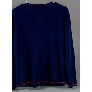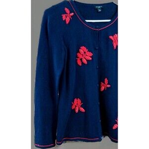 Talbots Petite S Navy Red Strawberry Embroidered Button Cardigan Y2K Cottagecore