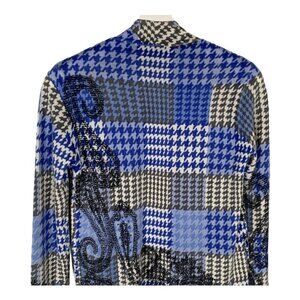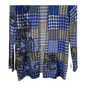Talbots Petite SP Merino Wool Blue Plaid Patchwork Cardigan Sweater