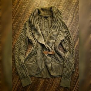 Talbots Petite SP Small Petite Olive Green Cardigan Sweater Knit