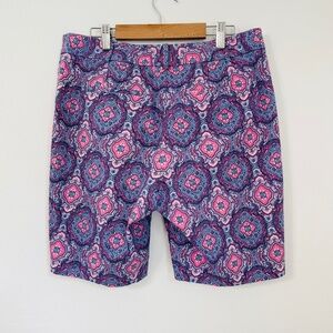 Talbots Petite Size 8P Mid-Rise Bermuda Shorts Pink/Blue Medallion Print Size M