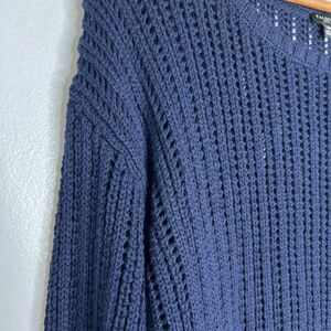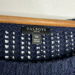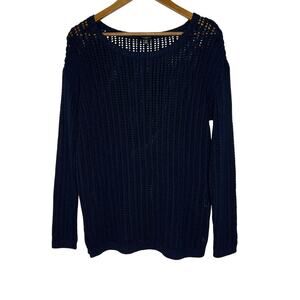 Talbots Petite Size MP Navy Open Knit Sweater Lightweight Casual Layering