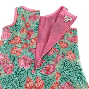 Talbots Petite Sleeveless Fish Print Sheath Dress Green Pink Cotton Woman Sz 8P