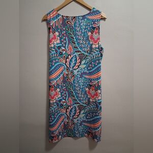 Talbots Petite Sleeveless Paisley Stretchy Midi Dress Bright Colorful Size XLP