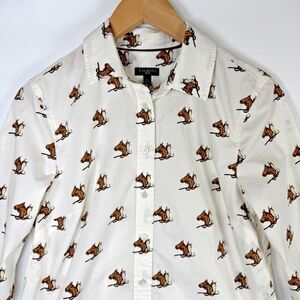 Talbots Petite Small Horse Equestrian Print Button Down Shirt White Cotton