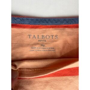 Keywords: Talbots, Petite, Striped Top, 3/4 Sleeve, Tunic, Casual Top, Orange, Pink, Blue, White, Boat Neck, Cotton Top, Women's Top