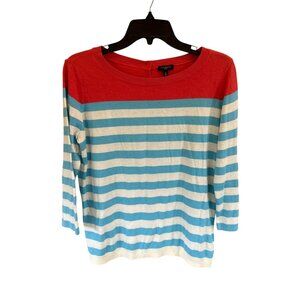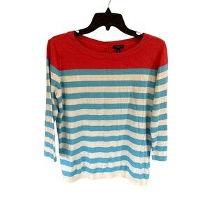 Talbots Petite Striped Sweater MP 3/4 Sleeve Red Blue White Nautical Cotton Knit