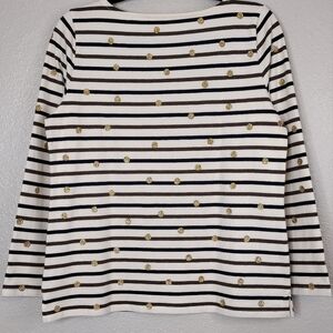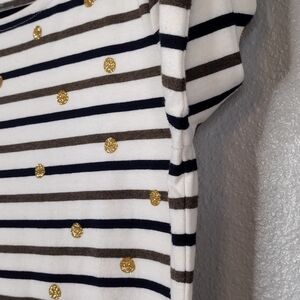 Talbots petite summer striped gold glitter polka dot pullover long sleeve top.
