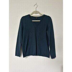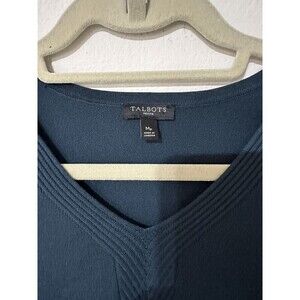 Talbots Petite Sweater V neck Cotton Modal Knit Pullover Teal Blue Size Medium MP
