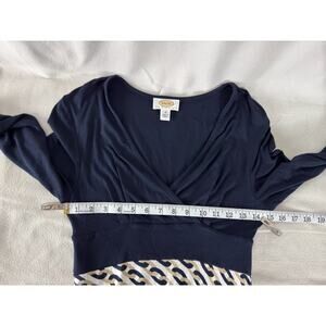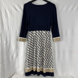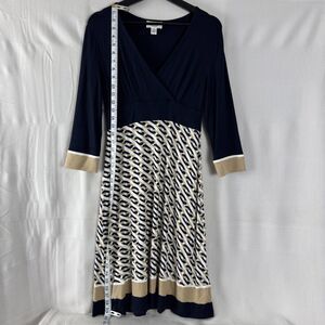 Talbots Petite Sz 2P Wrap Chain Link Print Stretch A Line Midi Dress Navy White