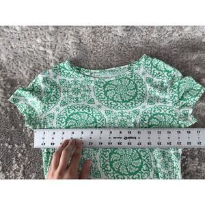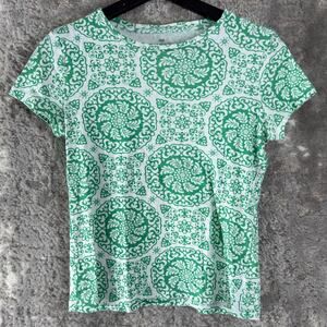 Talbots Petite Sz P Pima Cotton Geometric Top Green Short Sleeve Pullover Casual