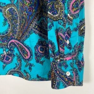 Talbots Petite Teal Multicolor Paisley Print Long Sleeve Button Down Shirt