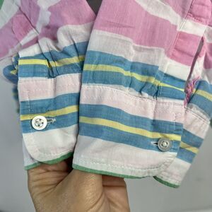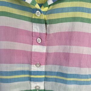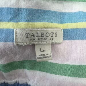 Talbots Petite Top Size LP L Popover Striped White Pink Blouse Pastel Collar