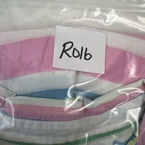 Talbots Petite Top Size LP L Popover Top Striped White Pink Blouse Pastel Collar
