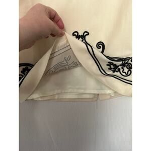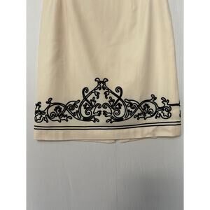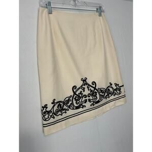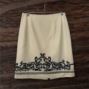Talbots Petite VTG Cream Black Wool Embroidered Knee Length Pencil Skirt Size 8