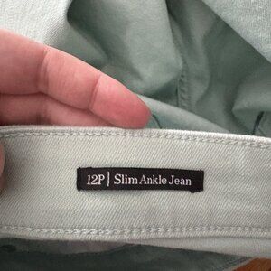 Talbots Petite Women 12P Mint Green Denim Cotton Blend Stretch Slim Ankle Jean.