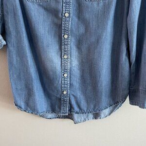 Talbots Petite Women SZ SP Blue Chambray Roll Tab Long Sleeve Button Up Blouse