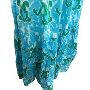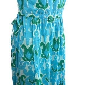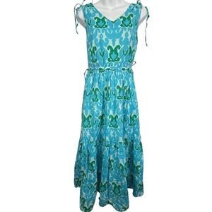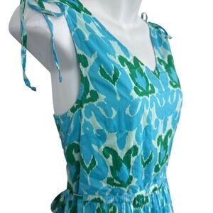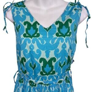 Talbots Petite Womens Blue Green Cotton Midi Peasant Sleeveless Dress sz 8P
