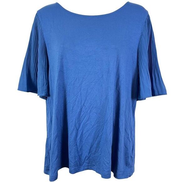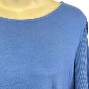 Talbots Petite Womens Blue Pleated Statement Sleeves Stretch Knit Top Shirt sz L