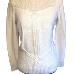 Talbots Petite Women’s Cotton Knit Sweater Cream Button Shoulder Size PS