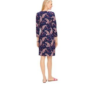 TALBOTS PETITE COTTON PAISLEY SHIFT DRESS WITH 3/4 SLEEVES