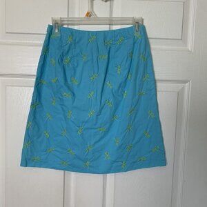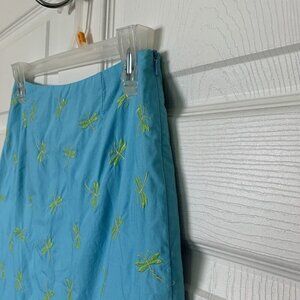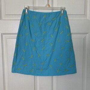 Talbots Petite Women’s Size 2P Blue Green Embroidered Dragonfly Skirt Lined