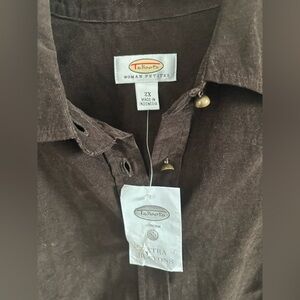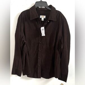 Talbots Petite Womens corduroy Sz 2XP chocolate brown up shirt Career Workwear