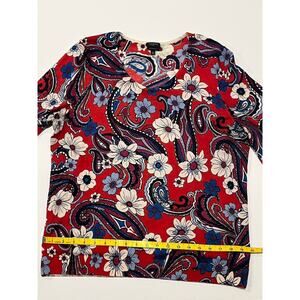 Talbots Petite XL Pure Merino Wool Floral Red Blue Cream Sweater