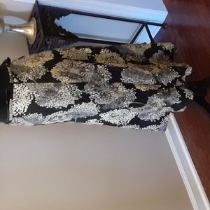 Talbots Petite black cream gray dandelion linen silk blend Aline skirt 12P …EUC