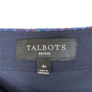 Talbots Petite blue and pink plaid wool faux wrap pencil skirt Side zip Size 4P