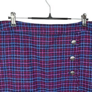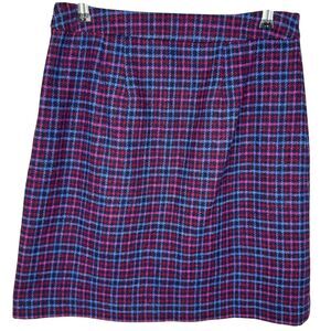 Talbots Petite Blue and pink plaid wool skirt