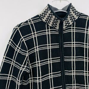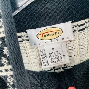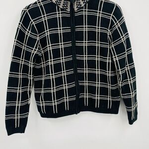 Talbots Size Small Petite SP Black White Window Pane Plaid Long Sleeve Zip Up Sweater Jacket