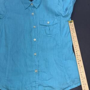 Talbots Petites 100% Pure Irish Linen Quiet Luxury Button Up Pocket Blouse Top S