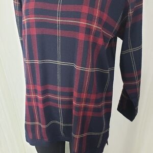 Talbots Petites 100% wool plaid sweater black red size Petite Small